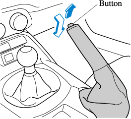 Depress the brake pedal and pull the parking brake lever upwards, then press the release button. While holding the button, lower the parking brake lever all the way down to the released position.