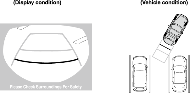 Because there may be a difference between the displayed image, such as indicated below, and the actual conditions when parking, always verify the safety at the rear of the vehicle and the surrounding area directly with your eyes.
