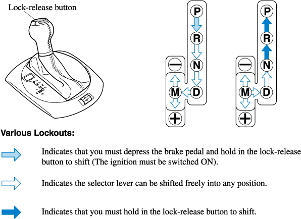 The Sport AT has an option that is not included in the traditional automatic transmission that gives the driver the option of selecting each gear instead of leaving it to the transmission to shift gears. Even if you intend to use the automatic transmission functions as a traditional automatic, you should also be aware that you can inadvertently shift into manual shift mode and an inappropriate gear may be retained as the vehicle speed increases. If you notice the engine speed going higher or hear the engine racing, confirm you have not accidentally slipped into manual shift mode (Search).