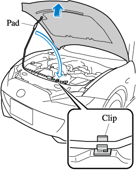 When closing the hood, do not push it excessively such as by applying your weight. Otherwise, the hood could be deformed.