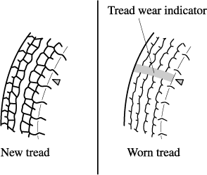 If a tire wears evenly, a wear indicator will appear as a solid band across the tread.