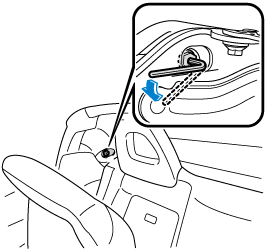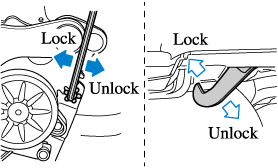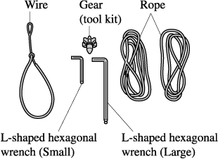 Turn the hexagonal wrench (Small) and gear (tool kit) counterclockwise and engage the hook with the vehicle body side.