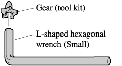 Insert the short end of the hexagonal wrench (Small) into the gear (tool kit) and assemble.