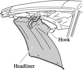 The fasteners in the five locations at the front of the headliner are not fastened. Do not lose the fasteners because they are needed for the required servicing at the Authorized Mazda Dealer.