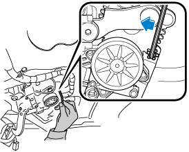 Insert the short end of the L-shaped hexagonal wrench (Large) into the motor bracket bolt.