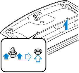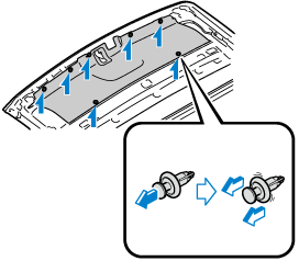 Install the headliner to the front roof using the fasteners at two locations.