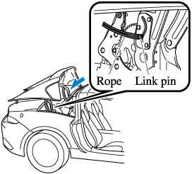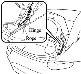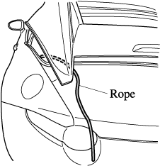 The rear roof is locked completely if the position where the rope is hooked is at the rear end of the bracket groove in the direction of the vehicle rear, as shown in the figure, when viewed from the vehicle interior.