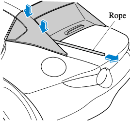 Slowly close the rear roof while lightly pulling the rope with one hand so that the rope does not unhook.