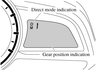 While in direct mode, the D and M indication illuminate and the gear position in use is illuminated.