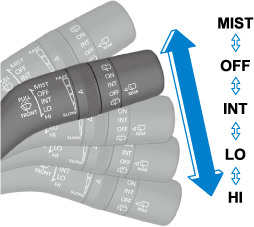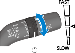 Rotate the switch upward (FAST direction) to shorten the interval time of the wiper operation, and rotate the switch downward (SLOW direction) to lengthen it.