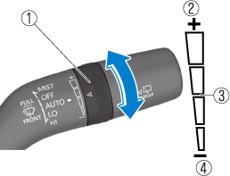 The sensitivity of the rain sensor can be adjusted by turning the switch on the wiper lever.