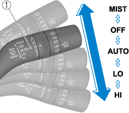 Switching the auto-wiper lever from the OFF to the AUTO position while driving activates the windshield wipers once, after which they operate according to the rainfall amount.