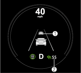 The MRCC with Stop & Go function setting status and operation conditions are indicated on the multi-information display and the active driving display.