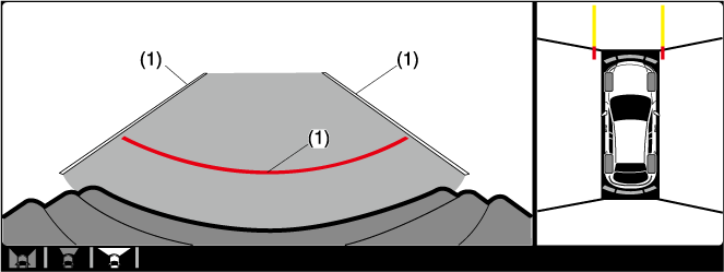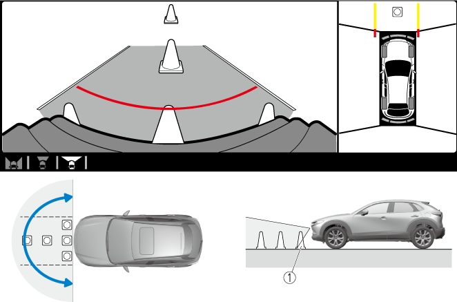 Indicates the approximate width of the vehicle and the distance (from front end of bumper) in front of the vehicle.