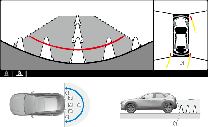 Use the top view/rear wide view to assist in checking the safety of the surrounding area when accelerating from a stop, parking, or stopping the vehicle.
