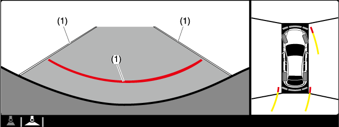These guide lines indicate the approximate width of the vehicle and distance to a point measured from the rear of the vehicle (from the end of the bumper).