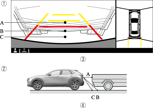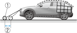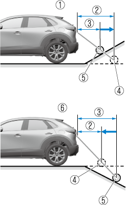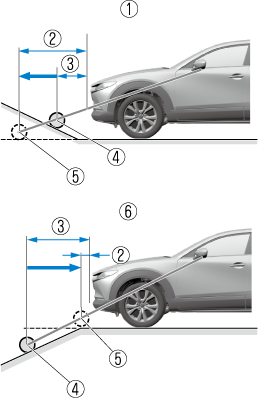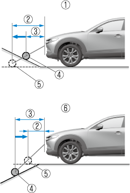 If the vehicle is on a slope, obstructions taken by the camera can appear farther or closer than the actual distance from the vehicle.