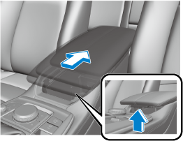 The lid can be opened/closed while it is slid to the 1st and 2nd stages, but if the rear seatback is folded, the lid cannot be opened/closed while it is slid to the 2nd stage because the rear seat (head restraint) will contact it.