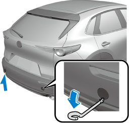 Remove the tiedown eyelet and the lug wrench from the luggage compartment (Search).