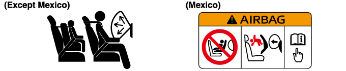 The front and side supplemental restraint systems (SRS) include different types of air bags. Please verify the different types of air bags which are equipped on your vehicle by locating the “SRS AIRBAG” location indicators. These indicators are visible in the area where the air bags are installed.