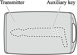 Pull out the auxiliary key from the transmitter while pressing the knob.