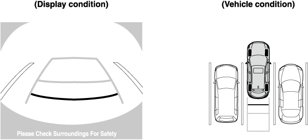 The operation of the rear view monitor when reversing the vehicle varies depending on the traffic, road, and vehicle conditions. The amount of steering and the timing also varies depending on conditions, so confirm the surrounding conditions directly with your eyes and steer the vehicle in accordance with the conditions.