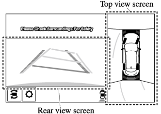 Displays the image of the area around the vehicle and the rear of the vehicle.