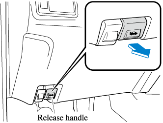 1. With the vehicle parked, pull the release handle to unlock the hood.