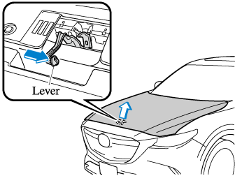 2. Insert your hand into the hood opening, slide the latch lever to the right, and lift up the hood.