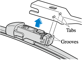 8. Align the wiper arm tabs with the blade component grooves.