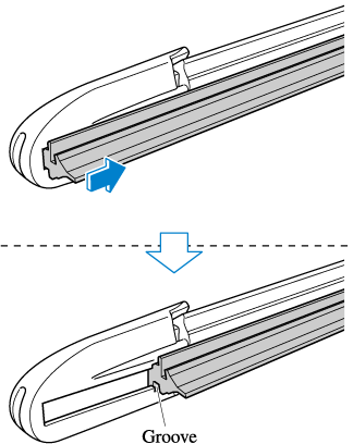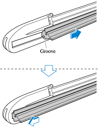 5. Insert the end of the new blade rubber into the groove of the blade holder until it contacts the end of the blade holder.