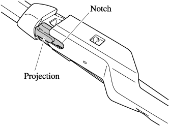 9. Align the blade component projection with the wiper arm notch.