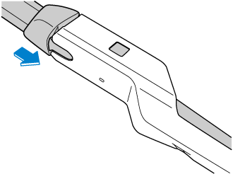 2. Slide the blade component in the direction of the arrow while pressing the wiper arm tab to remove the blade component from the wiper arm.