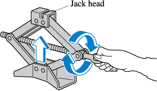Turn the jack handle clockwise and raise the vehicle high enough so that the spare tire can be installed. Before removing the lug nuts, make sure your Mazda is firmly in position and that it cannot slip or move.