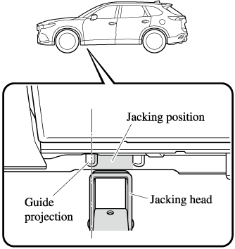 Set the groove on the top of the jack head at a right angle into the center of the designated jack-up position guide projection closest to the vehicle front.