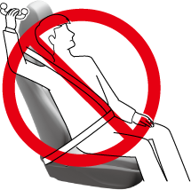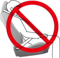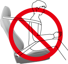 Adjust the front seats as far back as possible and always sit upright against the seatbacks with seat belts worn properly.