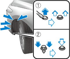 Turn the screw counterclockwise and remove it, and then partially peel back the mudguard.