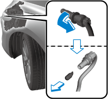 If you are changing the left bulb, start the engine, turn the steering wheel all the way to the right, and turn off engine. If you are changing the right bulb, turn the steering wheel to the left.