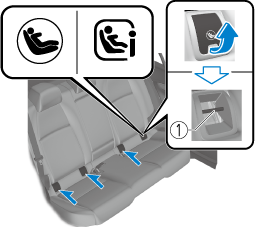 • The ISOFIX/LATCH*1 lower anchors marking on the cover indicates the position of the ISOFIX/LATCH*1 lower anchors for the attachment of a child-restraint system.