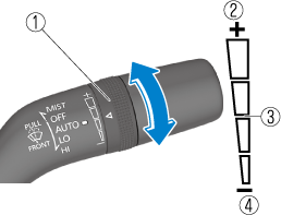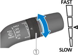 Rotate the switch upward (FAST direction) to shorten the interval time of the wiper operation, and rotate the switch downward (SLOW direction) to lengthen it.