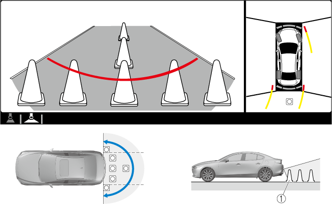 Use the top view/rear wide view to assist in checking the safety of the surrounding area when accelerating from a stop, parking, or stopping the vehicle.