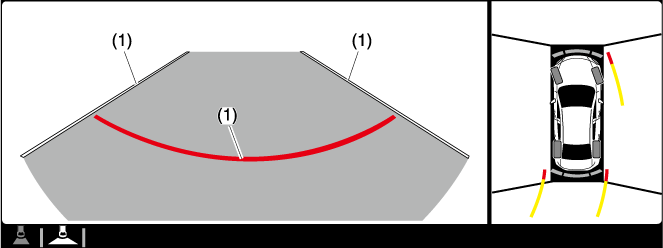 These guide lines indicate the approximate width of the vehicle and distance to a point measured from the rear of the vehicle (from the end of the bumper).
