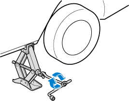 8. Turn the jack handle clockwise and raise the vehicle high enough so that the spare tire can be installed. Before removing the lug nuts, make sure your Mazda is firmly in position and that it cannot slip or move.