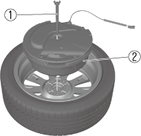 Secure the damaged tire to the vehicle using the spare tire hold-down bolt removed when removing the spare tire.
