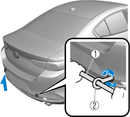 Remove the tiedown eyelet and the lug wrench from the luggage compartment (Search).