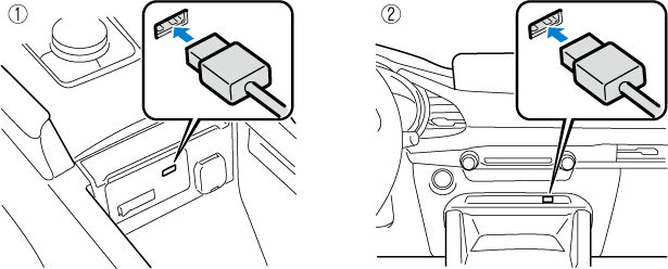 Insert an Android™ Smartphone-genuine connector cord into the USB port to connect the Android™ Smartphone. Insert or pull out the plug with the plug perpendicular to the USB port.