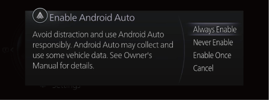 Always Enable: Enables Android Auto™ each time without a confirmation.