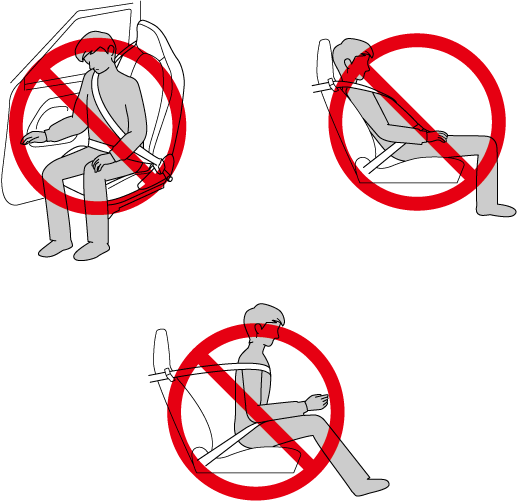Adjust the seats as far back as possible and always sit upright against the seatbacks with seat belts worn properly.