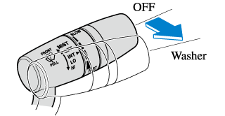 If the windshield washer is turned on when the windshield wipers are not operating, the windshield wipers operate a few times.