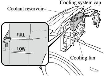 If the coolant reservoir is empty or new coolant is required frequently, consult an Authorized Mazda Dealer.